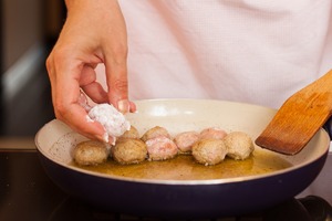 Сформовать из фарша фрикадельки величиной со средний грецкий орех.