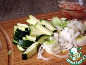 Цуккини нарезать брусочками, порей полукольцами. Я нарезала еще и кочерыжку брокколи))