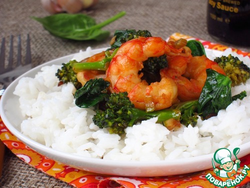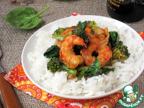 Рецепт «Креветки с зелеными овощами в стиле вок»: