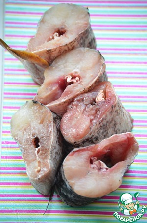 Разрезать щуку на куски шириной 3-4 см