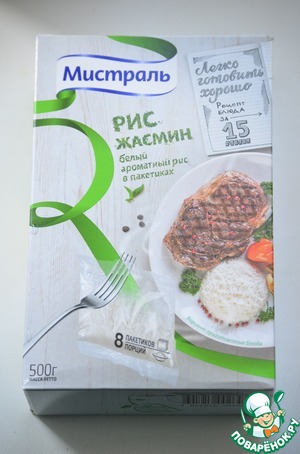 Отварить рис в пакетиках согласно инструкции, на его приготовление уйдет 15 мин.