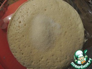 Опара поднялась, можно добавлять ингредиенты к основному тесту и вымешивать наши будущие булочки