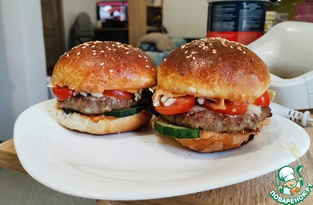 Рецепт нашла очень очень давно на просторах интернета. На сайте тут есть один рецепт, но мой немного другой. Часто мои домашние используют булочки в качестве хлеба, они тоже прекрасно подходят в бутерброду с маслом и сыром. Детям тоже нравится, и тем более мужчинам, что может быть лучше, чем домашняя котлета и домашняя булочка - домашний бургер!