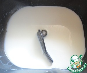 Тесто я готовила в ХП, но ниже опишу как его готовить тем у кого нет данного дивайса. В моей ХП сначала нужно заложить жидкие продукты, а затем сухие. Наливаем в чашу ХП молоко.