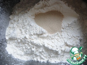 Далее добавляем просеянную муку и дрожжи. Ставим в ХП в режим "Дрожжевое тесто"