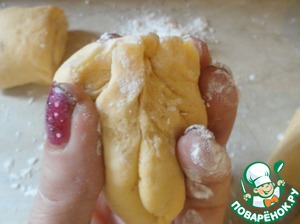 С одного конца "стягиваем" тесто и защипываем кончик.