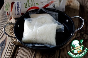 Для этого рецепта нам понадобится 2 пакетика риса Кубань от ТМ Мистраль. Опустить пакетики в кипящую, подсоленную воду и варить