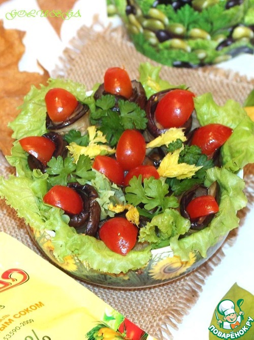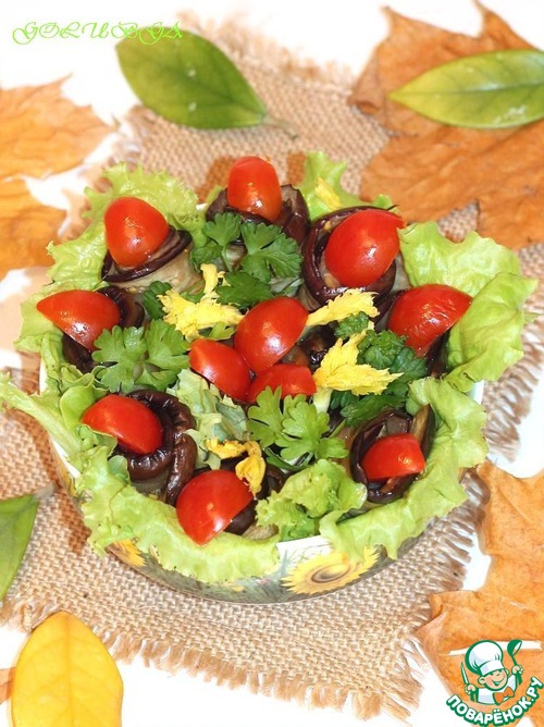 Тёплый салат из баклажанов с майонезной заправкой