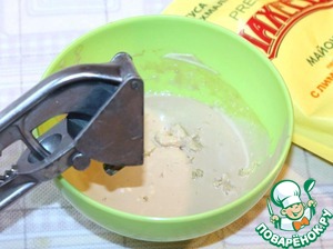 Выдавить через пресс чеснок и добавить молотый перец. Перемешать и если потребуется — посолить.