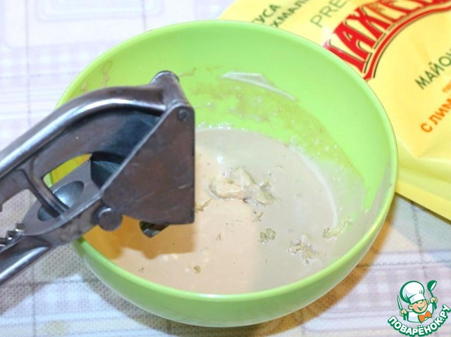 - Майонез (с лимонным соком «Махеевъ» - для заправки) — 1 ст. л.