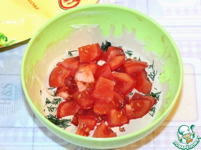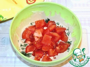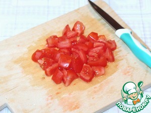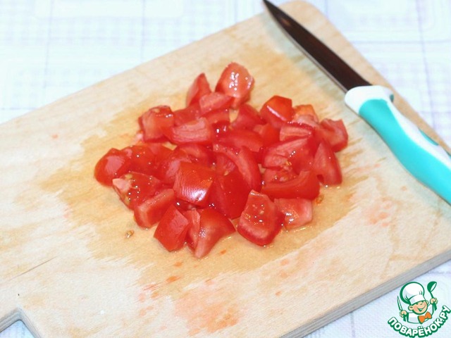 Нарезать кубиками помидоры,