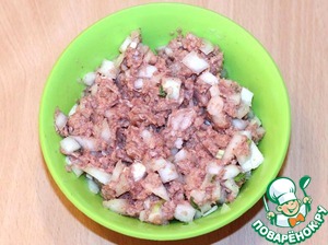 Шампиньоны чистим и режем пластинками. Выкладываем на фарш.