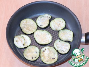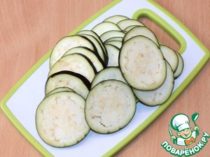 Баклажан промыть нарезать кружочками толщиной в 0,5 см. Посолить и отставить в сторону на 15 минут.