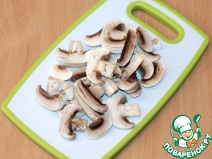 Шампиньоны промыть, обсушить и нарезать пластинками.