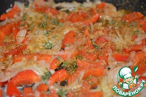 Порезанные овощи обжариваем на сковороде 2 минуты, затем добавляем карри и тимьян перемешиваем.