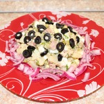 Я уже выставляла рецепт салатика с печенью трески, но... ничего не могу с собой поделать, люблю я ее очень и не перестаю экспериментировать. Этот вариант без майонеза, более легкий... ну и по составу есть отличия. Заходите, если интересно, милости прошу.