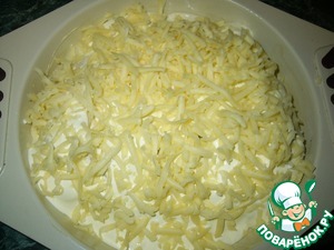 Посыпать сверху сыром, натёртым на крупной тёрке. Запекать в предварительно разогретой духовке при температуре 180 градусов-20 минут (ориентируйтесь по своей духовке)