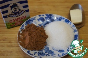 Сливки смешать с какао и сливочным маслом. Нагреть на небольшом огне, мешая, до однородности. Варить до легкого загустения.