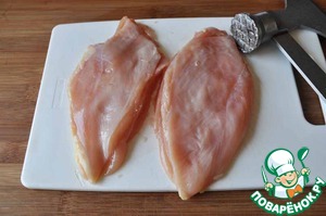 Грудки обсушиваем бумажным полотенцем и слегка отбиваем (расплющиваем). -