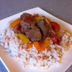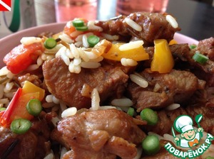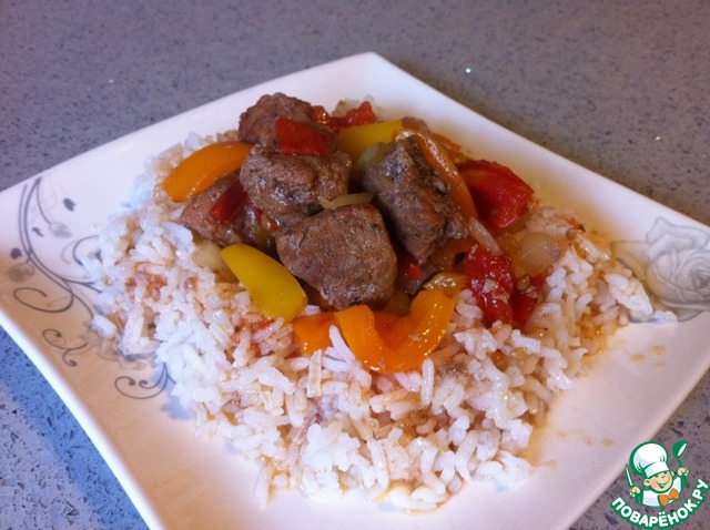 • Мясо выкладываем на рис, добавляем соус Табаско.