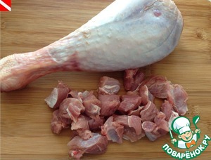 • Режем мясо. В оригинальном каджунском рецепте используется филейная часть, у меня мясо с голени.