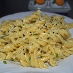 Рецепт «Макароны в яично-сырном соусе с кунжутом»: