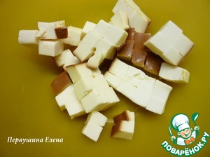 • Сыр нарезать кубиками и сложить в чашку.