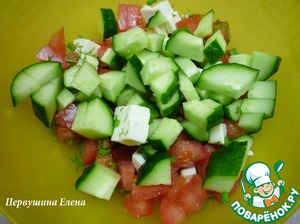 • Огурец порезать кубиками и и отправить к остальным ингредиентам.