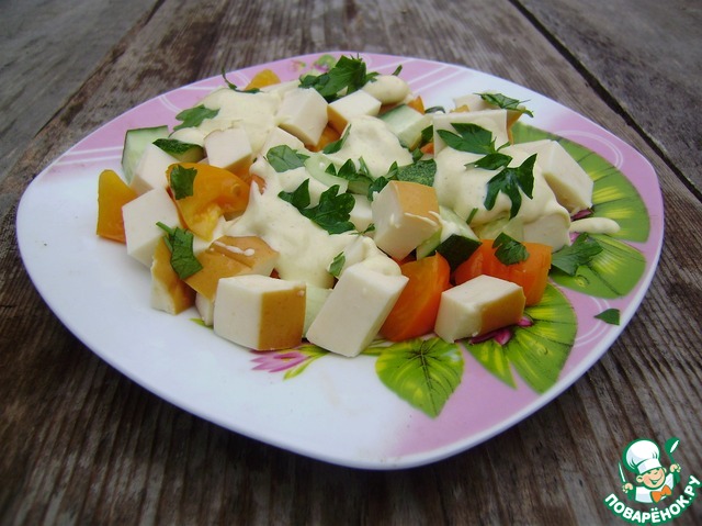 Рецепт «Салат овощной с копченым сыром»: