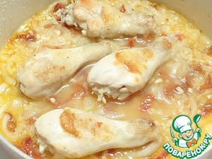 Готовлю голени, пока не загустеет соус. Подаю готовое пшено с куриными голенями и соусом, посыпав зеленью петрушки. Приятного Вам аппетита!