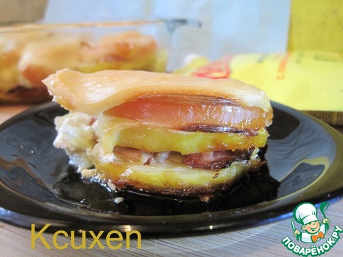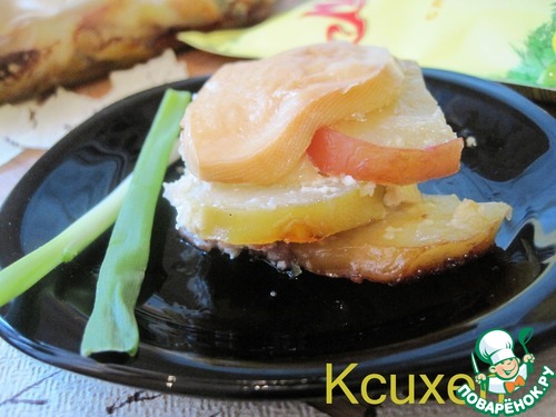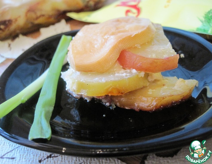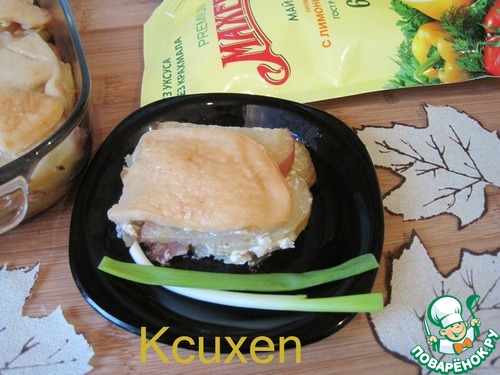 В классическом рецепте французского блюда Тартифлет (Tartiflette) используется сыр Реблошон (Reblochon), как вариант рассматривается любой кремовый сыр с плесенью. Но... да простят меня французы и любители благородного сыра, в качестве эксперимента, я использовала козий сыр. Получилась моя вариация на тему Тартифлет.