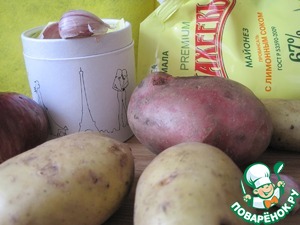 Картофель моем и отвариваем " в мундире" в течении 25-ти минут