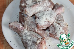 Голени посолить, поперить, присыпать молотым кориандром и мукой