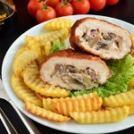 Указано в ингредиентах, что нужны 2 куриные грудки, т.е. 4 шт. филе, в каждое из которых мы вкладываем по 1 ст.л. ложке начинки. Но (!) из 200 грамм грибов+100 грамм сливок получается, как минимум, в 2 раза больше начинки. К тому же нет понимания по размеру куриных отбивных и надо ли их резать вдоль и/или поперек. Для целой отбивной филешки мало будет 1 ст.л. начинки.