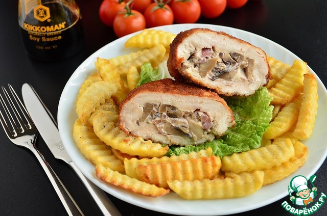 Это блюдо я попробовала в ресторане на юбилее у подруги, и оно не дало мне покоя, нежное сочное куриное мясо в хрустящей корочке, а внутри... жидкий ароматный, нежный, сливочный жюльен. Когда я узнала, что в конкурсе Мистраль будут блюда из курицы, я решила, что обязательно должна его приготовить. Оказалось все гораздо проще, чем я думала, и быстрее. Заходите, и я покажу, как приготовить ресторанное блюдо за 15 минут)))