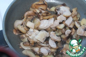 Куда проще и вкуснее было бы нарезать курицу кусочком и бросить к шампиньонам тушиться. И мороки меньше и грязной посуды тоже.