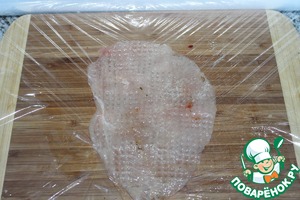 Куриную грудку хорошенько отбить через пленку, чтобы не забрызгать все вокруг