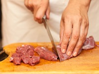 Накройте крышкой и тушите говядину на медленном огне в течение часа. Затем переложите в кастрюлю с кипящей водой. |