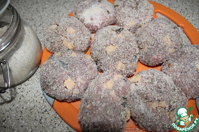 Сформировать зразы, обвалять в панировочных сухарях и поставить минут на 20 в холодильник.