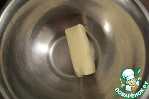Пока у нас кое-что варится и отмачивается, распускаем на малом огне кусочек сливочного масла. Муку перемешиваем с разрыхлителем и специями.