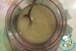 Вареный лимон охлаждаем в холодной воде, разрезаем пополам, выдавливаем сок в отдельную посудинку, высыпаем туда полстакана сахарного песка и перемешиваем. Это наша заливка.