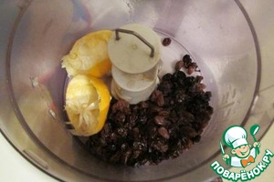 Всё, что осталось от лимона, кроме косточек, выкладываем в чашу блендера. Откидываем клюкву на сито и отправляем к лимону в блендер.