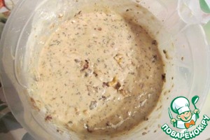 А теперь всё аккуратно замешиваем. Получаем довольно жидкое пёстрое тесто. -