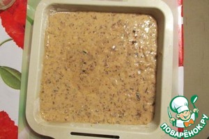 Выливаем тесто в форму, слегка смазанную растительным маслом и чуть присыпанную мукой. У меня форма 20х20 см.