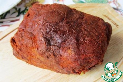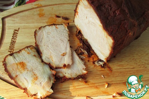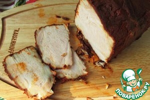 Мясо получается мягкое, но достаточно плотное, хорошо нарезается даже тонкими ломтями.
