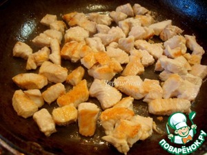 Растительное масло раскалить на сковороде, обжарить с одной стороны мясо в течение 2 минут, не перемешивая его.