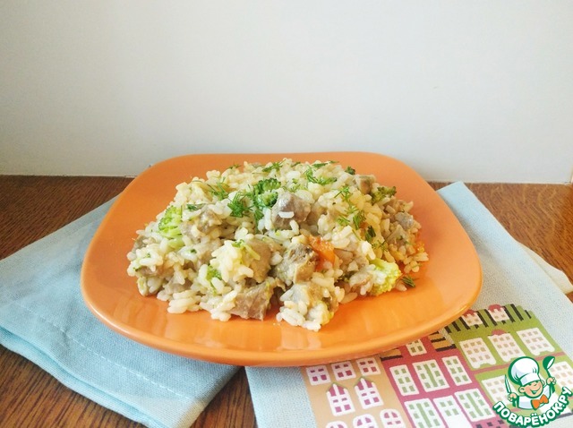 Рецепт «Рис с индейкой, брокколи и томатами в сырном соусе»: