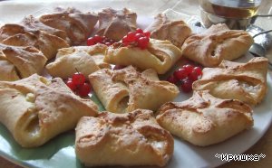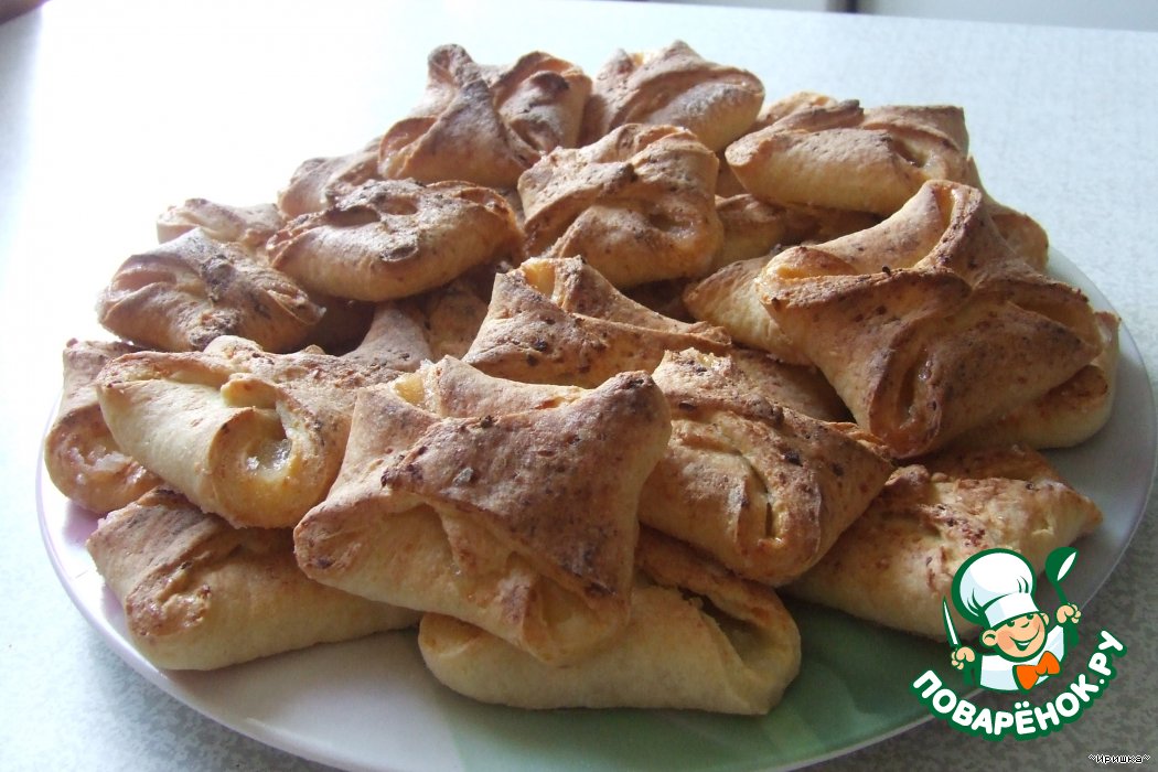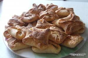 И свернуть конвертиком. Противень смазать маргарином, выложить печенье и выпекать до готовности, температура примерно 180 градусов.