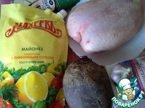 Ингредиенты для «Куриная грудка, запеченная в майонезно-свекольном соусе»: