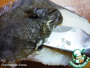снять с огня, процедить, залить филе камбалы и запечь его в разогретой до 180°С духовке в течение 10 минут. -